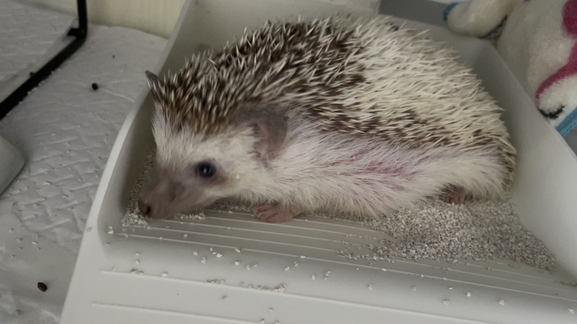 ハリネズミにとっては数少ない遊び場になります。砂浴びをしたり、ホリホリをしたりストレス発散になっていることも。ハリネズミによっては砂場でのトイレを覚える子もいます。