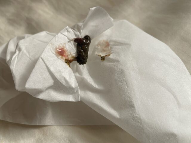 皮の部分は消化にあまり良くないとのことで(かなり抵抗ありましたが…)ハニーワームの中身だけを出して、シリンジで与えることにしました。今まで嫌がっていたシリンジもハニーワームの美味しさのおかげで喜んで受け入れるようになったバジルちゃん。お薬入りでも抵抗なく受け入れてくれるようになり、体調のよい日が増えました。