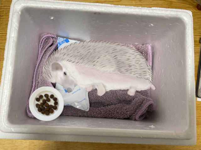 ハリネズミの安置には発泡スチロールを使用し、臓器をなるべく冷やすように保管します。最後は十分な食事やお水が飲めない場合もあるので、フードやお水を一緒に添えてあげると良いです。